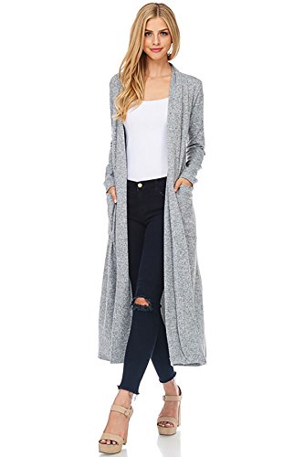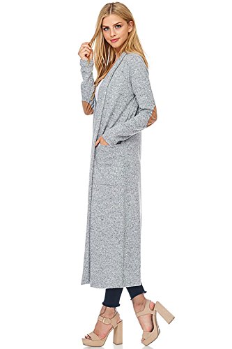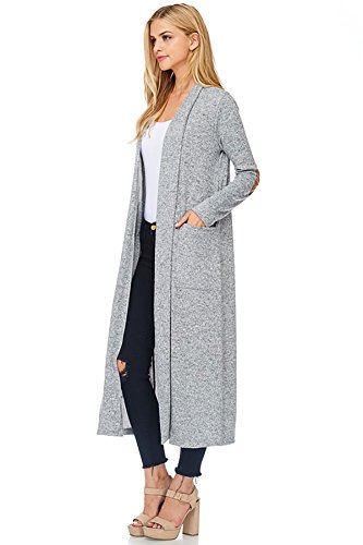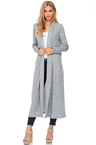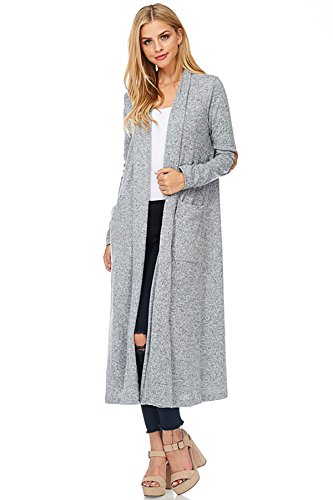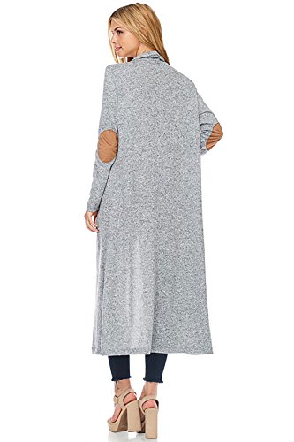 SHOPGLAMLA Long Sleeves Fuzzy Texture Suede Elbow Patches Two Tone Brushed Sweater Knit Duster Cardigan. Made In USA