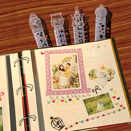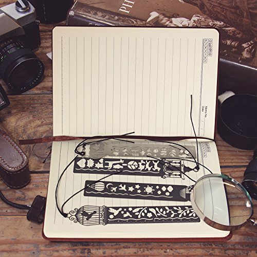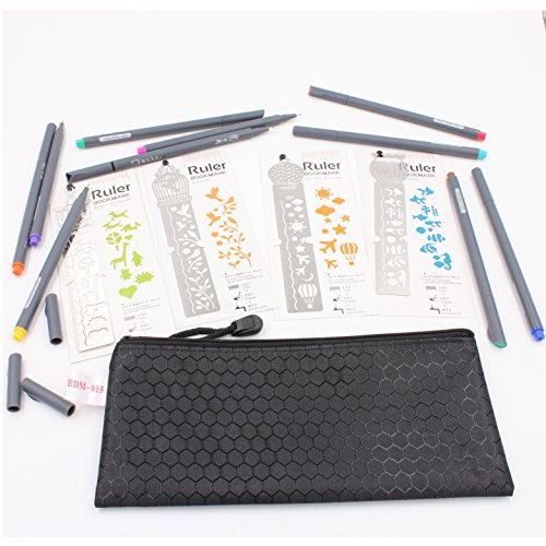 Metal Bookmark Ruler Set of 4, YARKOR Stainless Steel Drawing Painting Stencils Scale Template, Hollow Drawing Template Icon Tool DIY Photo Album/Diary Accessories Ruler (Fineliner Color Pen Set)