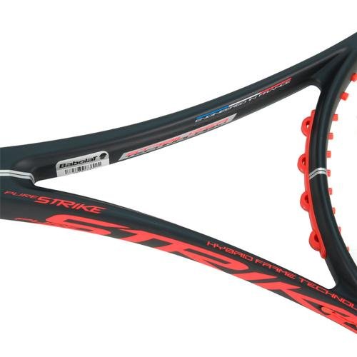 The Strike series of rackets is all about response and precision, moving forward and hitting the ball on the rise, while moving your opponent round the court to create open angles to win points. The hybrid frame construction (mix of square and elliptic) offers more responsiveness at ball impact than any other tennis racket; used in tandem with stiff carbon fibre it increases torsional stability at ball impact. First strikers get the perfect balance between response and precision. X-Sider on the frame increases the sweetspot by 10% to bring forgiveness on off-centre hits. The beam has different thicknesses for less torque at ball impact and better responsiveness. Energy restitution comes from new Pebax material injected into the grommets and bumper. Specification: *Head size: 630cm2 *Weight: 305g *Balance point: 320mm *Length: 685mm *Composition: GraphiteFeature