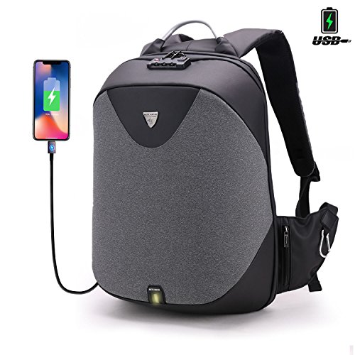-. Feature : COOL LAPTOP BACKPACK: Backpack to yourself, nobody else! Unique fashion shuttle molding design external dimension: 18.5*12.5*6.2 inches, there are 3m light reflect strips on the surface and the strap, a reinforced top-mount handle for long term use, external USB charging port and built in charging cable inside, offers you a more convenient way to charge your electronics device while walking. / GREAT STORAGE SPACE: When our laptop backpack is in your hand, storage trouble is a friend! A main separate compartment space with a circulation padded for the laptop size max to 15.6 inch. Additional 8 pockets for the iPad, power bank, books, pen or other items, there is a folder side pocket with a zip on each side, one is with safety buckle for the kettle, another one is with a key ring, backpack offers convinces and safe for your work, school and outdoor activities. / WATER RESISTANT: Even laptop backpack is in the rain, PVC layer zipper cover is "bling", truly water-resistant we are the king! Not only the surface is made of polyester fiber and PVC water-resistant material, especially the zipper is also covered by PVC layer, perfectly protect electronics device in the bag inside from any water, no matter caught up by the rain or in outdoor activities, it's also applied. / ADJUSTABLE SHOULDER STRAP AND BREATHABLE BACK: Backpack knapsack is with "S" strap, pressure and tiredness are smashed! "S" type Custom-fit strap design for a truer, more comfortable fit. According to human engineering the knapsack shoulder strap and the back part both use breathable padding for air circulation and powerful sweat wicking material, with flexible attachment points are contoured for anybody's torso for a perfect fit for any size or shape, protect your spine perfectly. / SAFETY LIFE: Our BACKPACK STANDS BY YOUR WAY, THIEVES WILL BE FAR AWAY, there is a hidden Theft proof pocket in the back to protect your ID, credit card and passport, ANTI-THEFT LAPTOP BACKPACK is not only with anti-theft DUAL metal zipper, but a tough TSA coded LOCK makes your wallet and other valuables safe.