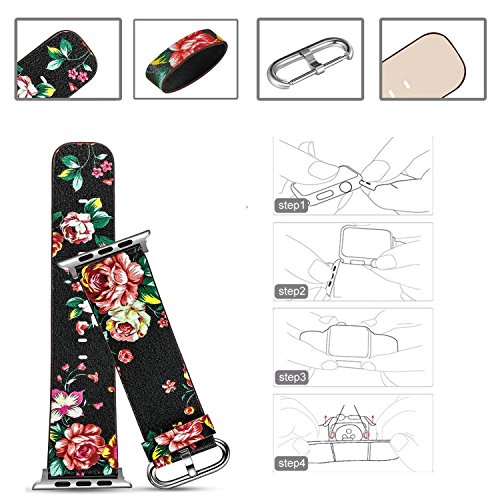 Apple Watch Band, Soft Leather Watch Wristband, Replacement Strap with Adjustable Metal Clasp for Apple Watch Series 1 Series 2
