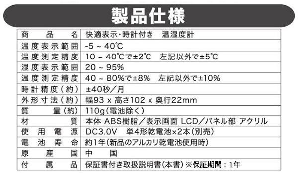 fk094igrjs熱中症予防やインフルエンザ対策など、年中使えるデジタル温湿度計☆温湿度表示に加え、快適表示・時計・カレンダー表示も付いています最高・最低温湿度メモリー表示機能付き☆ サイズ 個装サイズ:12×18×3cm 重量 個装重量:130g 製造国 中国 大画面で見やすいデジタル温湿度計 熱中症予防やインフルエンザ対策など、年中使えるデジタル温湿度計☆温湿度表示に加え、快適表示・時計・カレンダー表示も付いています最高・最低温湿度メモリー表示機能付き☆