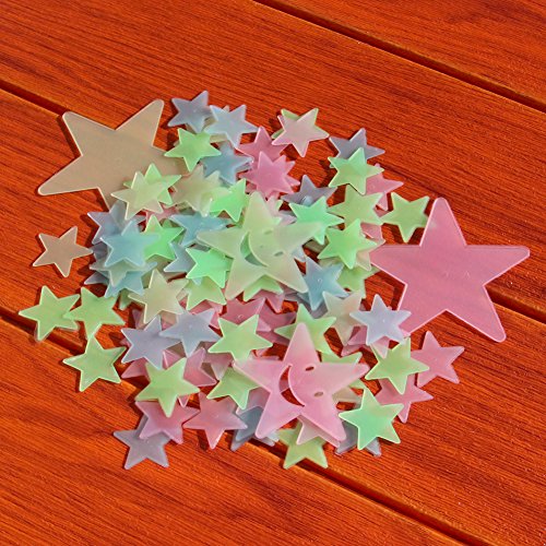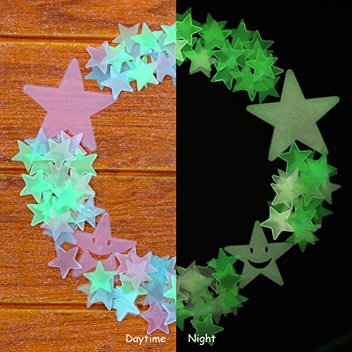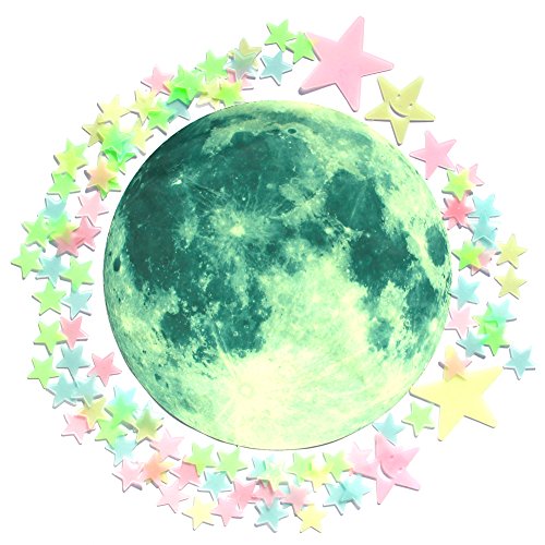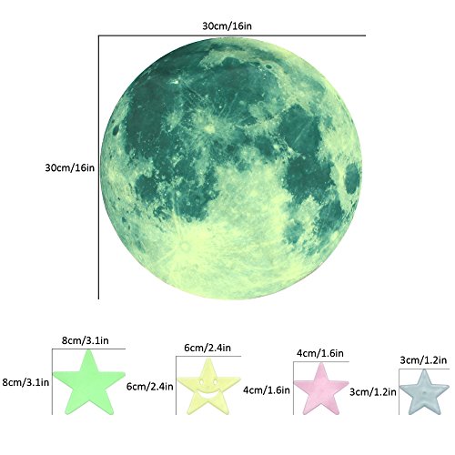 - Package include: Totally 107 PCS, 1 pc big Full moon 30*30cm; 2 pcs Big stars 8*8cm; 2 pcs Medium size stars 4*4cm; 100 pcs Little stars 3*3cm; 2 pcs Smiling stars 6*6cm(Coming with 9 PCS adhesive tapes as gifts); Material: PVC(Non-Toxic, Reusable, and Eco-Friendly)
