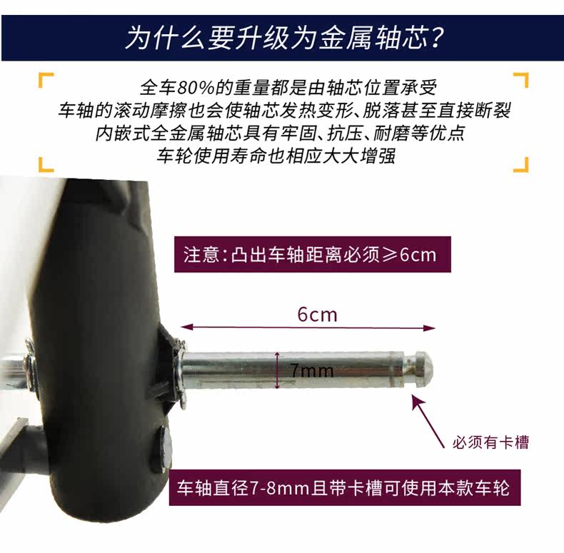 ?致丽生活 购物车轮子买菜车爬楼车轮静音备用轮金属轴芯两只