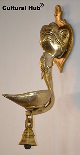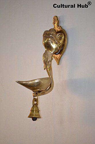 Cultural Hub ® J92-650-0092 Lord Ganesha Brass Wall Hanging Hand Craved Metal Home Decorative Antique Cultural Hub Art (Ganesha Face Wall With Bell)