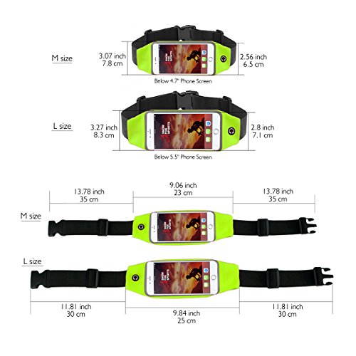 SUPERIOR QUALITY:Two Versions for the size up to 4.7" and 5.5". Sweatproof & water-resistant lycra material. Durable and hand washable fitness running belt waist gear bag for leisure and all outdoors sports