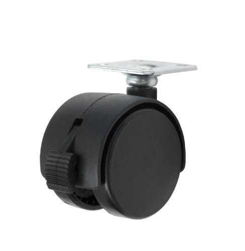 Twin Wheel Caster Solutions TWHN-50N-P02-BK-B 2" Diameter Nylon Wheel Hooded Brake Caster with Top Plate, 1.5" x 1.5" Plate, 1" x 1" Bolt Hole Pattern, 110 lb Capacity Range
