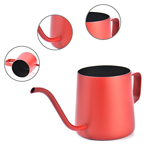 핸드 커피용 핸드 drip 커피 포트 파인구 포트 스테인레스강 테플론 도장 (240ml,레드)