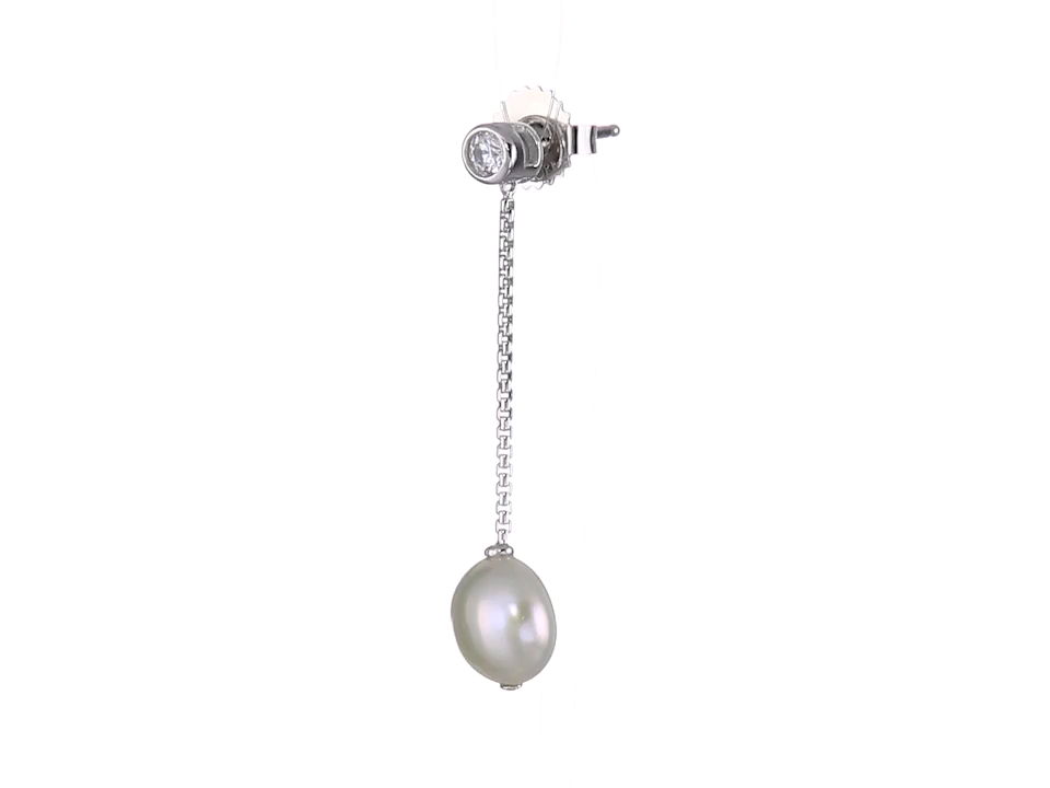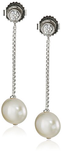 Sterling Silver White Freshwater Cultured Pearl Swarovski Zirconia Drop Earrings