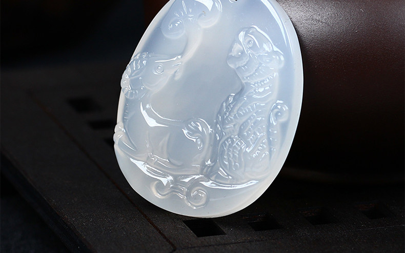 开光属猪虎羊采芝白玉髓吊坠生肖开运虎羊知福开运吊坠