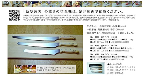 원본상품명: 仁作 押しても引いても切れる パン切&スライス包丁 波刃ナイフ 中 300mm No.3010