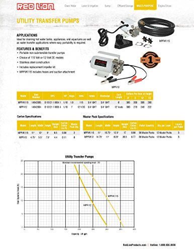 Red Lion MPFV12 360 GPH 90 Watts 12V DC Utility Transfer Pump