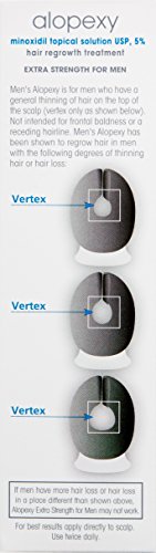 Alopexy 5 percent, extra strength for men, reactivates hair follicles to stimulate growth in an easy- to- use, no mess spray applicator.