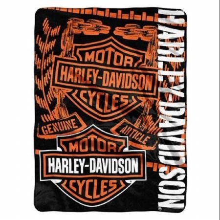 Harley-Davidson Gear Bar & Shield Raschel Throw Blanket, Black & Orange NW047129