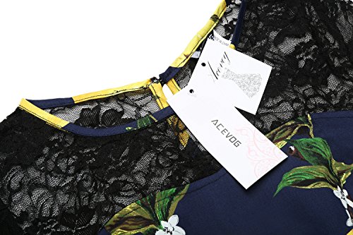Title : ACEVOG Women's Lace Crochet 3/4 Sleeve Vintage Rockabilly Swing Party Dress (Large, Blue)