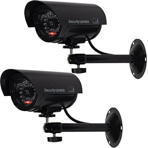 WALI Bullet Dummy Fake Surveillance Security CCTV Dome Camera Indoor Outdoor with one LED Light + Warning Security Alert Sticker Decals WL-TC-B2, 2 Pack