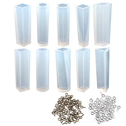 COCODE 10 Styles Resin Molds Silicone Pendant Mould with 2 Styles 100 PCS Screw Eye Pins for DIY Making Jewelry Necklace Pendant Earrings Charm Tools Accessories