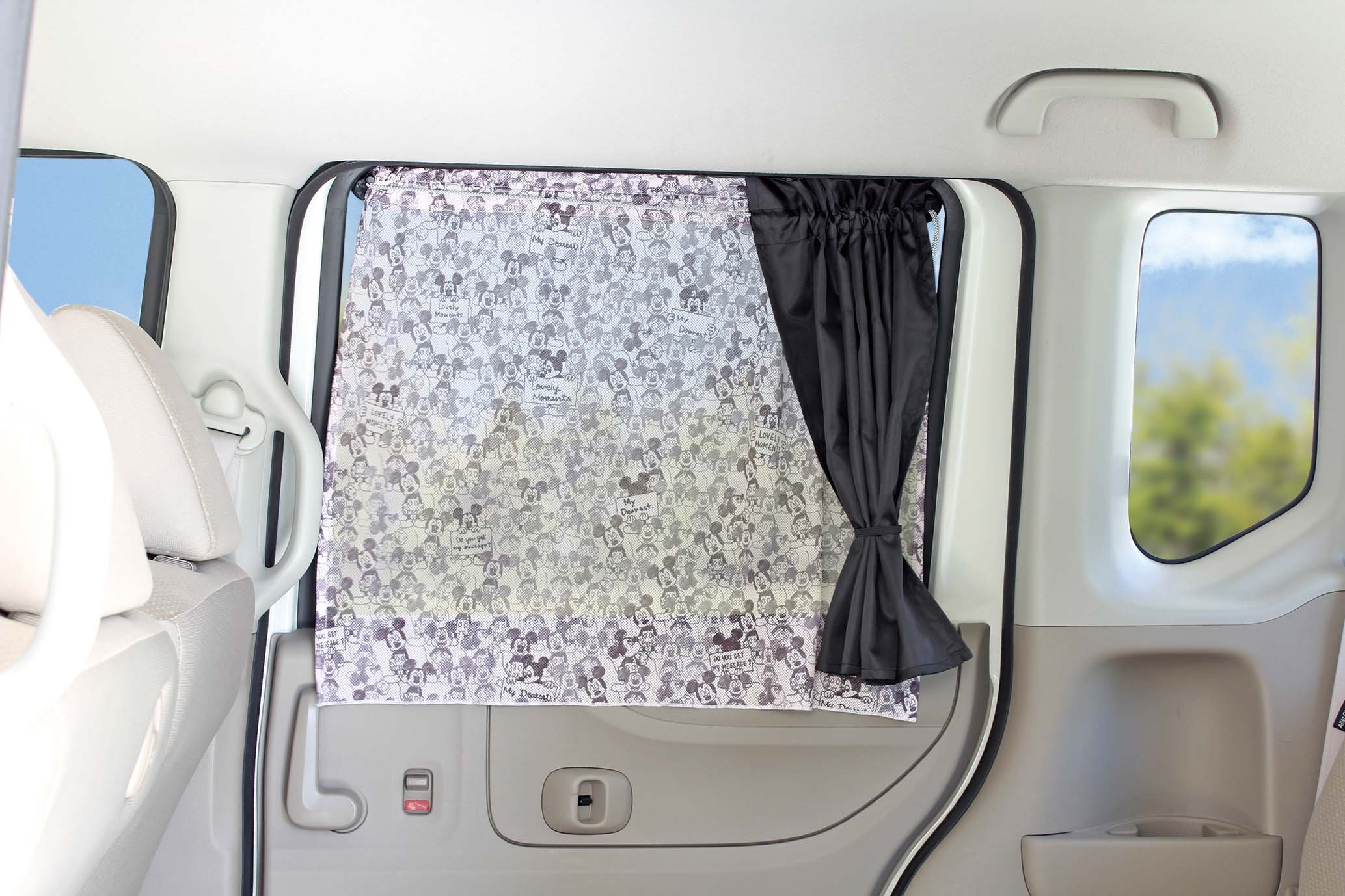 ● suction cup attachment ● sucker 4 pieces entrance ● 2 pieces ● Mickey mouse's design is a cute curtain.
