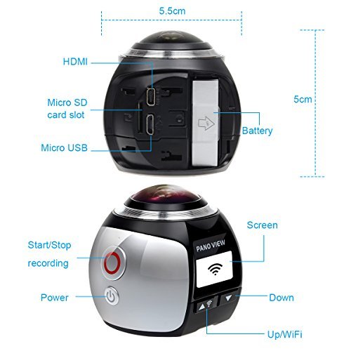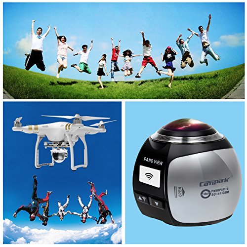 Campark 16MP 3K(2448*2448/30fps) 360 Degree Panoramic VR Action Camera,Spherical Lens,3D, Waterproof