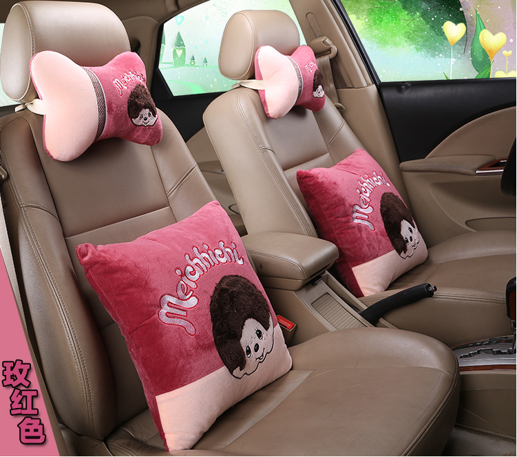 汽车头枕秋冬卡通毛绒护颈枕车用座椅护腰抱枕腰要靠枕枕头一对装