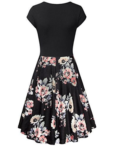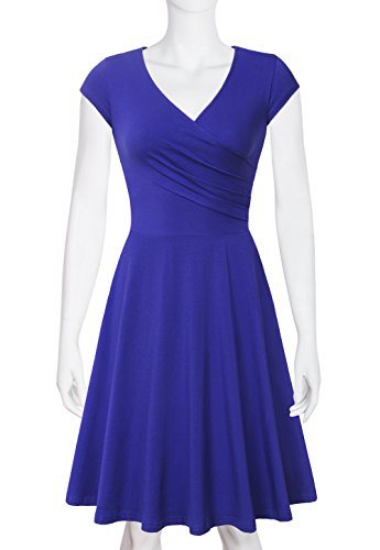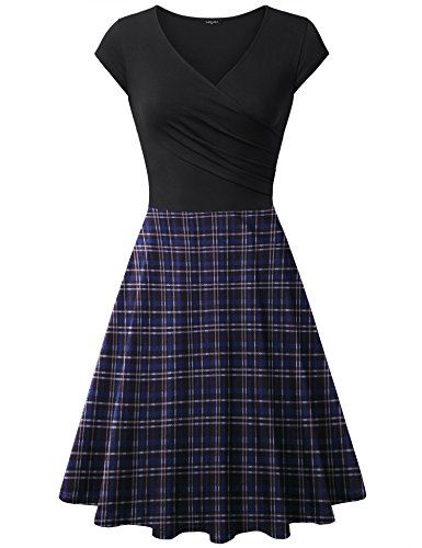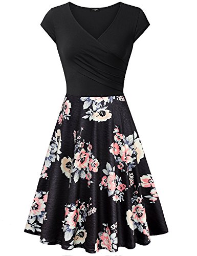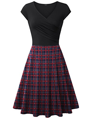 | Laksmi Women's Elegant V Neck Shirred Retro Vintage Prom Dress (Multi-Color) |