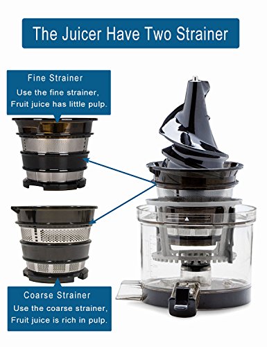 Easier juicing and high juice yield: Accommodate large produce items,reduce preparation and cleanup time, more resistances to clogging, high juice yield.