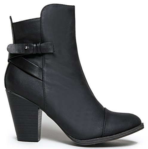 HEATHER-32 Western Inspired Heeled Ankle Boot Bootie