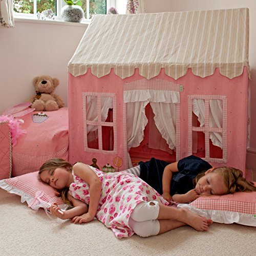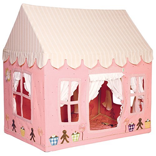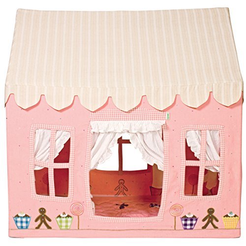 Gingerbread Men, Cupcakes, Lollipops are appliqued and embroidered on this 100% Cotton Playhouse which is then finished with a dusting of multi-colored dots. This Playhouse is easy to assemble with a light metal frame. A storage bag is included for easy transport. The playhouse measures 110 cm (43.5 in) x 74 cm (29 in) wide x 110 cm (43.5 in) high. 0