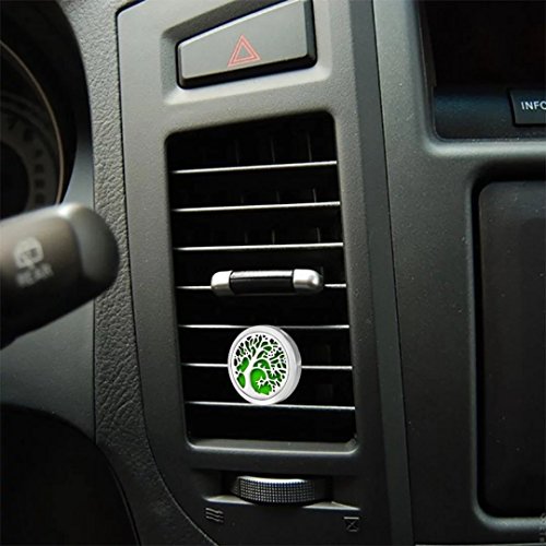 Car Air Freshener Aromatherapy Essential Oil Diffuser Tree of Life Stainless Steel Locket,11 Refill Pads