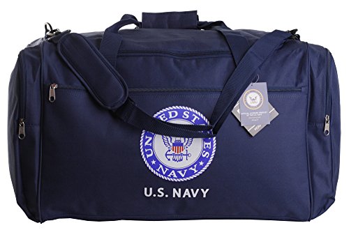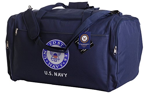 -. Binding : Misc. -. Brand : WTD -. Color : Blue -. Department : mens -. EAN : 0722530089330 -. Feature : An Authentic Officially Licensed Military Duffle Bag with U.S. Army, Air Force, Navy or Marines Symbol and Letters on Front / Sturdy Fabric 21" x 12" x 15" Tough Contruction / Padded Adjustable, Removable Strap Handle / Main Top Zip Closure with 2 Side Zip Pockets / One Large Zip Pocket Front for Quick-access-IDs and Documents -. Model : 13029 -. PackageQuantity : 1 -. ProductGroup : Sports -. ProductTypeName : SPORTING_GOODS -. Title : U.S. Navy Official Licensed Blue Duffle Gym Lage Bag -. UPC : 722530089330