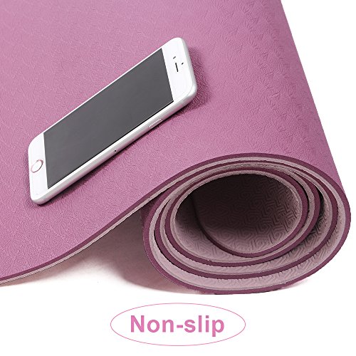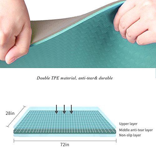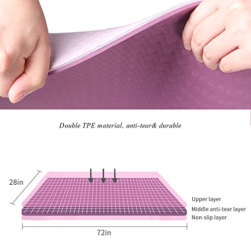 Letsfunny Yoga Exercise Mat is made of Eco-friendly and non-toxic TPE material, would be a safe use for kids or adults. The high density and exceptional resilience of workout mat keep you away from bumping onto a hard floors. Double-sided non-slip surfaces will prevent any injuries. Moreover, you can always choose any side to do yoga exercise. With straps and light weight features, Letsfunny exercise mat is easy for you to transport or storage.