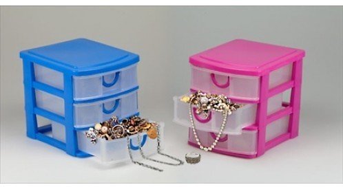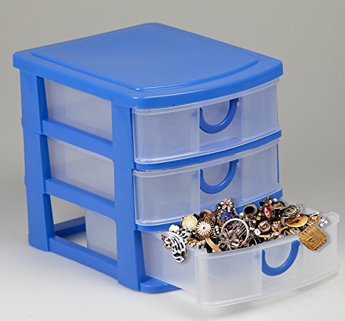 - Deluxe 3-Drawer Jewelry Chest / Jewelry Accessories Organizer / Arts & Crafts Organiser ( Drawers With Handle ) - Blue