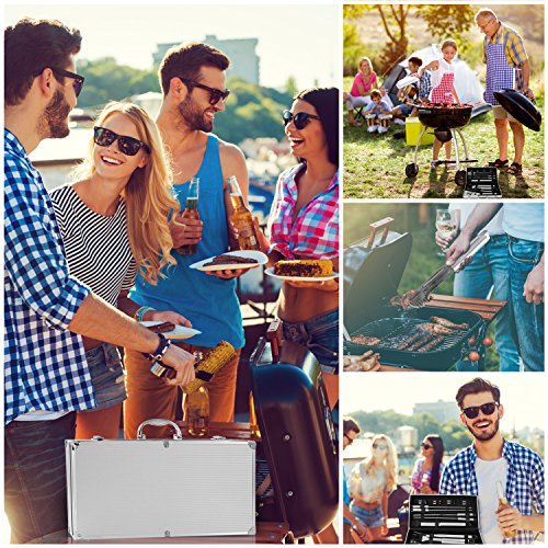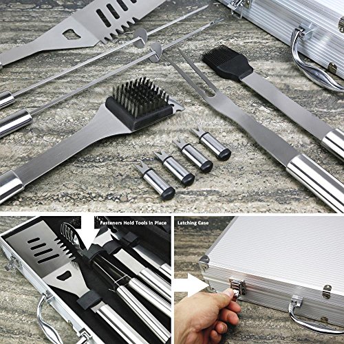 PORTABLE ALUMINUM CASE: These stainless steel grill accessories are lightweight and comes with an Aluminum storage gift case. Each tool fits conveniently inside case and allows portability without hassle.