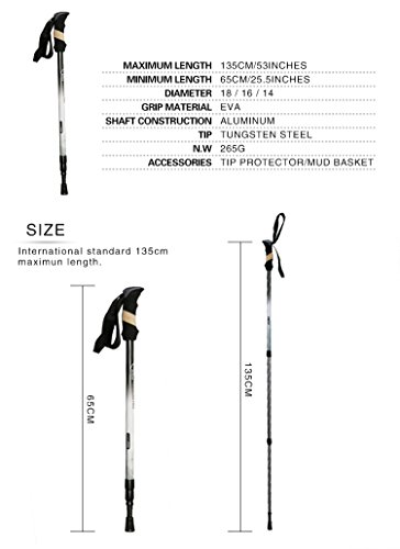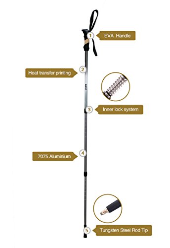 Ultra Strong Telescopic Anti-shock Lock Trekking 2 Poles Perfect for Outdoor Camping/Hiking/Walking/Mountaineering -1 Pair by YUETOR