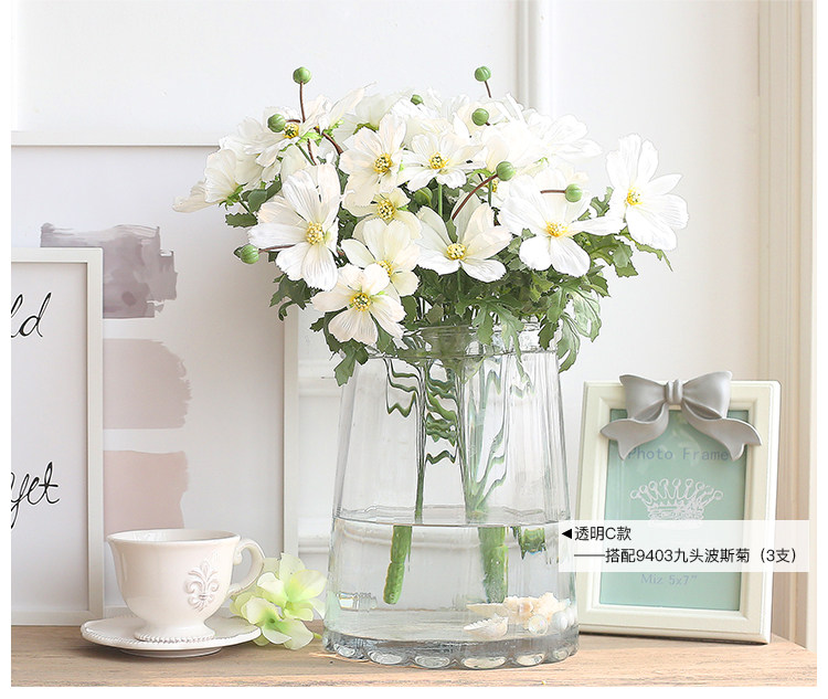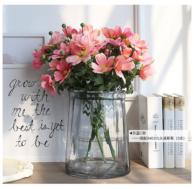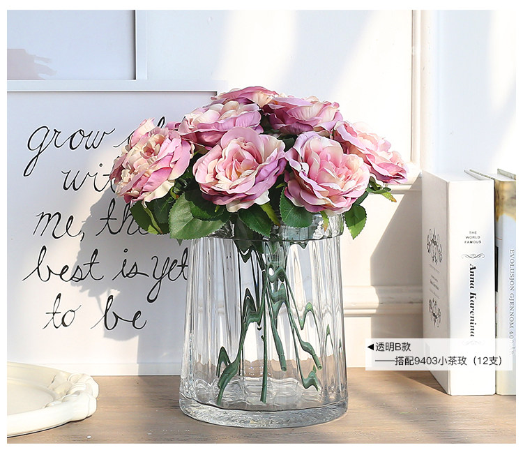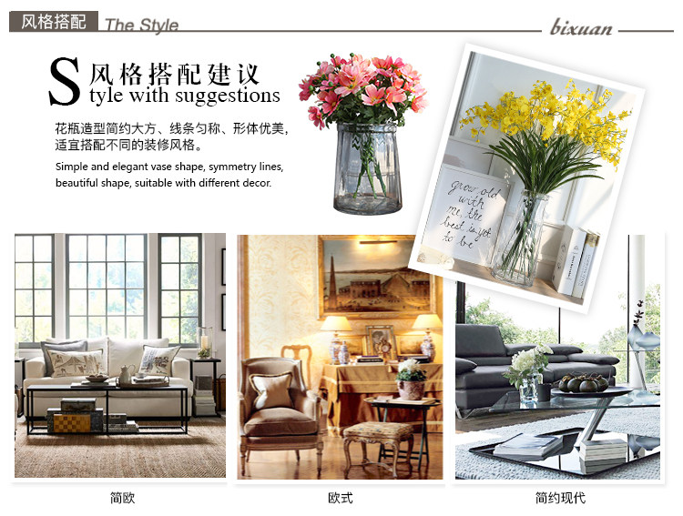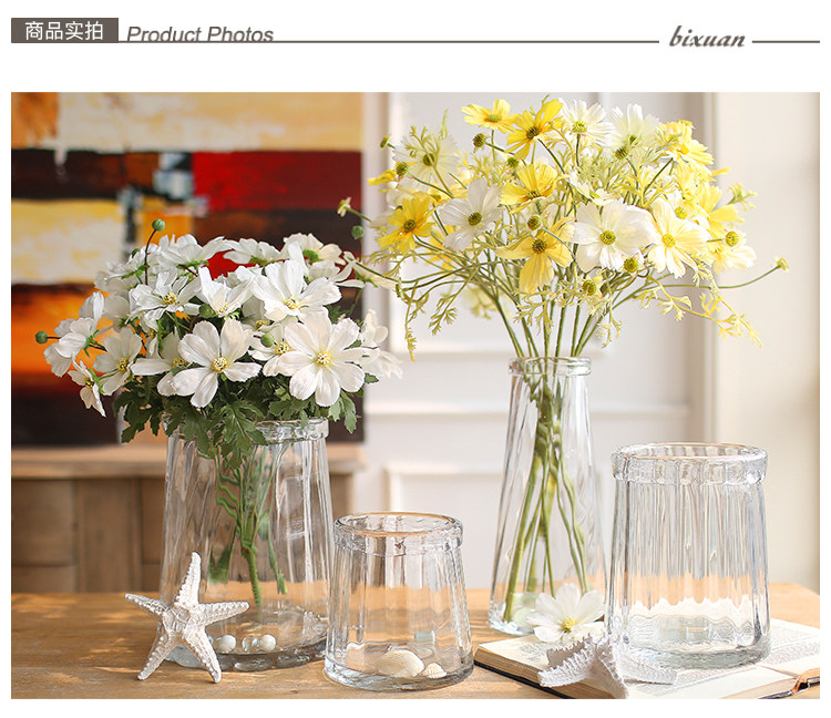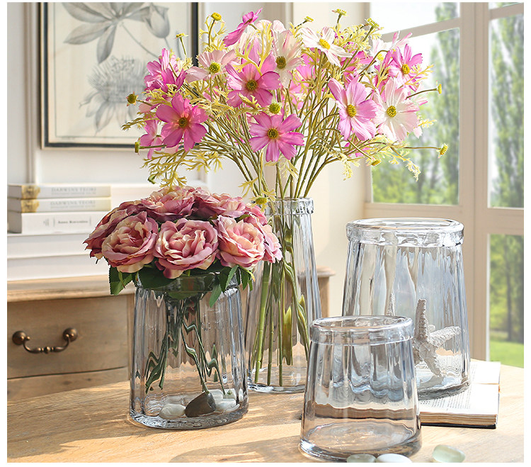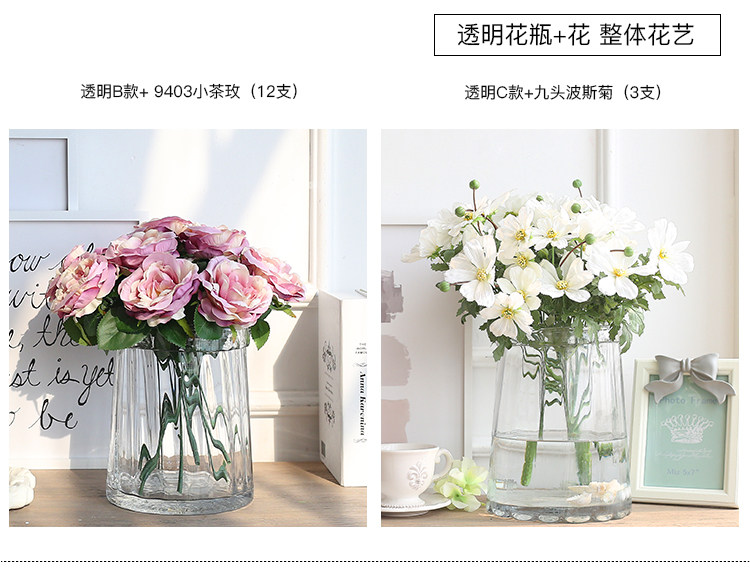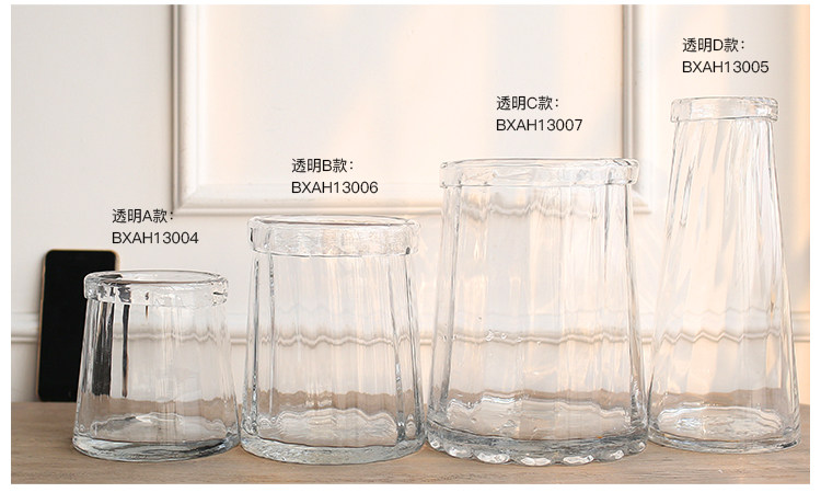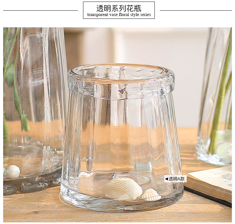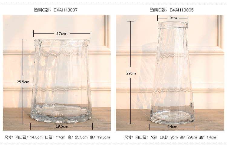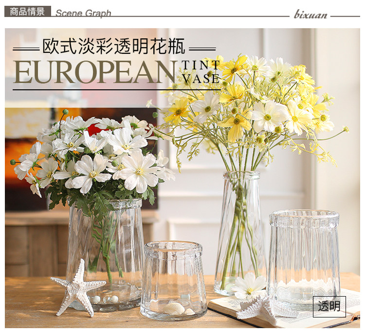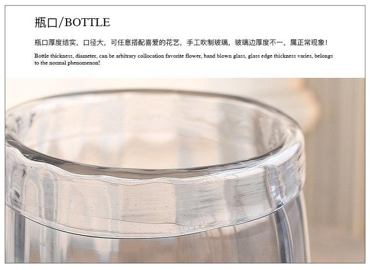 BX 欧式简约圆口玻璃花瓶 创意透明插花日式花器 客厅装饰摆件