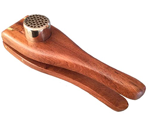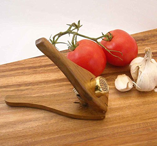 Made from environmentally friendly reclaimed teak, Garlic Press features a solid cast brass plunger and cup assembly that makes quick work of individual garlic cloves.