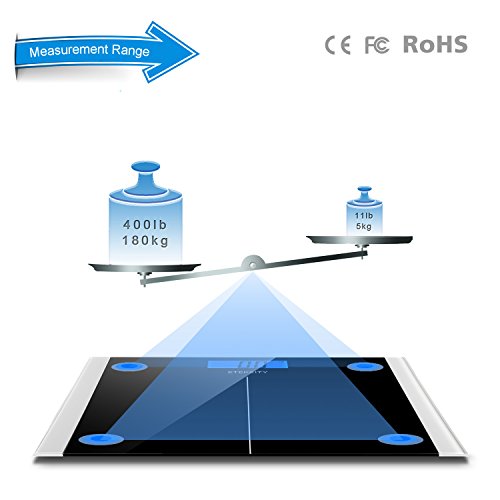 "Step-and-Read" - Immediate readings as soon as you step on the bathroom scale; Measurement Range:11lb-400lb (5kg-180kg)