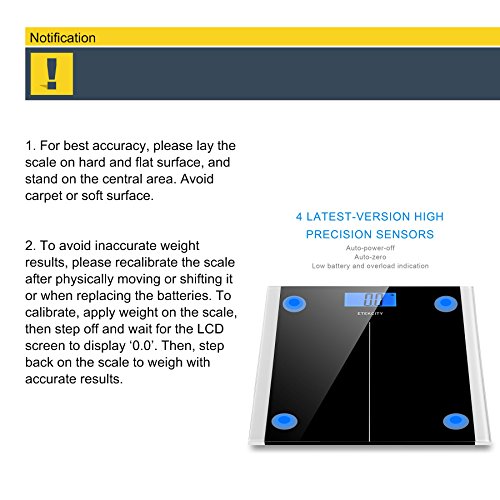 3. Body weight scale is not for light objects. If you want to weigh something below 11lb, we suggest customers buy Etekcity Kitchen Scale