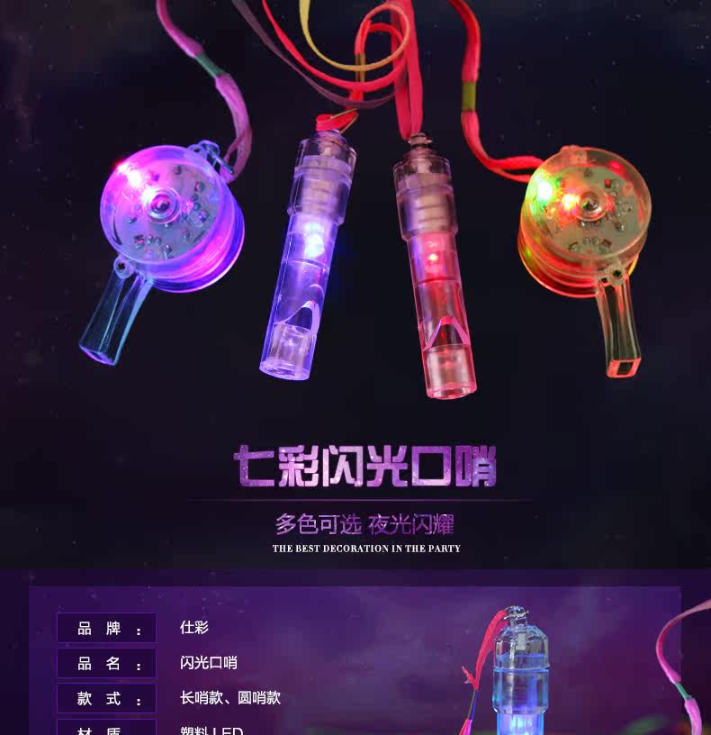 仕彩发光口哨节庆婚庆道具用品夜光哨子助威活动气氛哨子led口哨