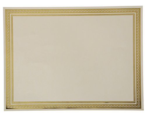 Award Certificates - 50 Blank Plain Paper Sheets - With Gold Foiled Metallic Border Computer Paper - Laser & Inkjet Printer Compatible - 11 x 8.5 Inches