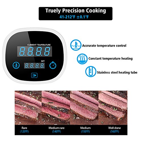 - Reliable and Accurate - Japanese superb exclusive active control thermostat precise the temperature to absolute accuracy of 0.1°C/32.18° F between 5-100° C/41-212° F in near silence, the circulation heating water pump keeps the water moving in order to yield a constant temperature and perfect results each time, you can enjoy a cooking technique made famous by professional chefs for its incredible results.