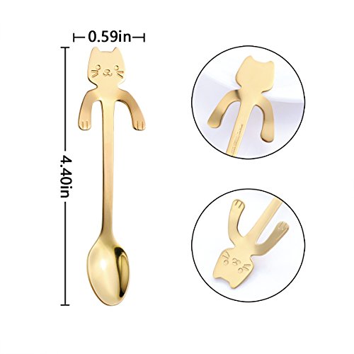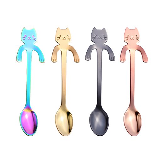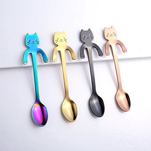 Valagrit Spoon-Stainless Steel Cat Kitten Design Coffee/Tea/Dessert/Drink/Mixing/Milkshake Spoons (4 Pack)
