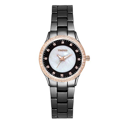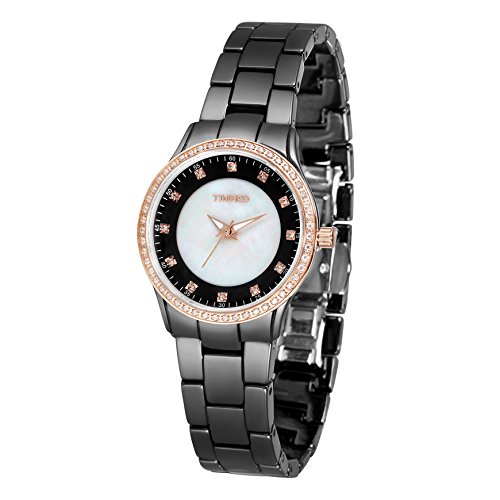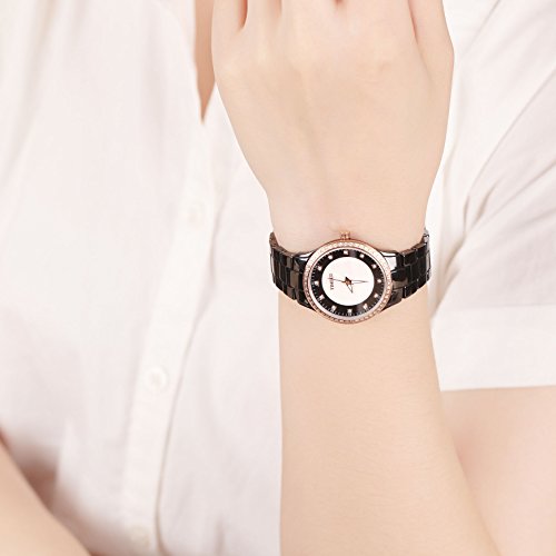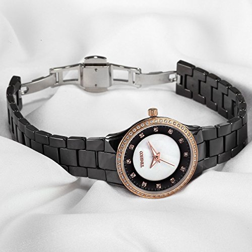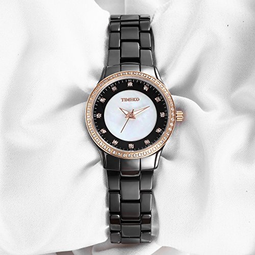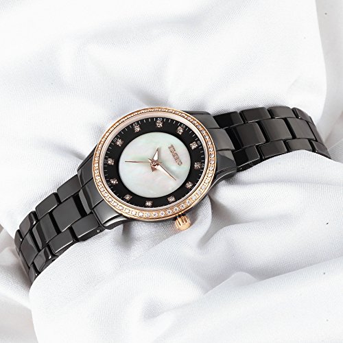 ♥Fine Material:The band of watch is precision ceramic,releasing a low-key light;Natural color shell dial, multi-faceted cutting stones set on the scale, simple but very stylish.