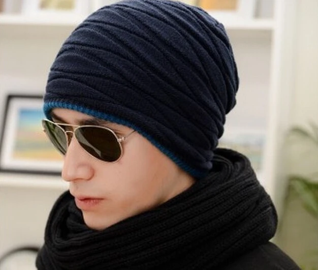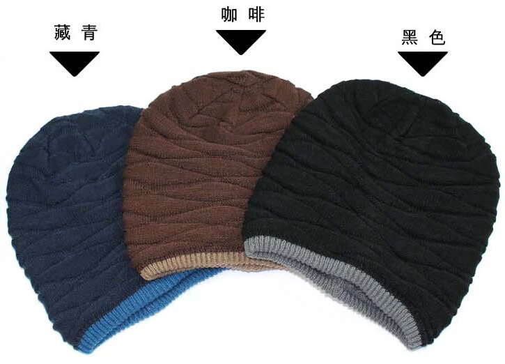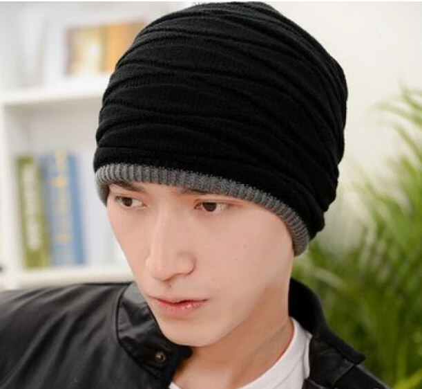 새로운 2016 니트 남성 겨울 모자 가을 비니 남성 따뜻한 캐주얼 모자 더블 양면 사용할