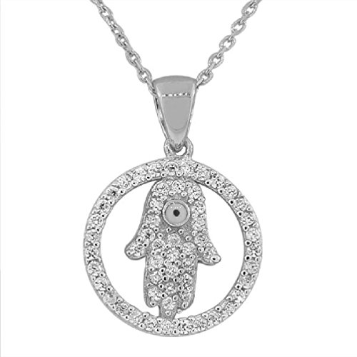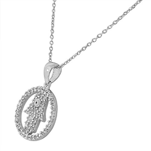 -. Binding : Jewelry -. Brand : Anguss Fashion Jewelry -. Department : girls -. Feature : Length (inches):18 / The pendant showcases an elegant design featuring a Hamsa-shaped charm set onto a delicate yet durable chain and sparkling with a setting of round-cut white CZ stone that decorates this unique pendant. The Hamsa/Evil Eye charm on this necklace is believed to protect the wearer from bad luck. The necklace is crafted of sterling silver. -. Label : Anguss -. Manufacturer : Anguss -. Model : 281070799233 -. MPN : 281070799233 -. PartNumber : 281070799233 -. ProductGroup : Jewelry -. ProductTypeName : FASHIONNECKLACEBRACELETANKLET -. Publisher : Anguss -. Studio : Anguss -. Title : White Gold Tone Hamsa Evil Eye Crystals CZ Pendant Necklace