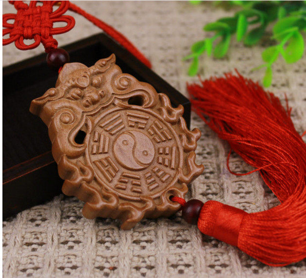 桃木兽头虎头太极八卦镜挂件化解门冲煞六冲七星太极镇摆件