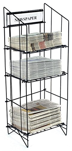Displays2go 43-Inch Tall Wire Newspaper Display Rack Stand with 3 Shelves 15.75 x 13.5-Inches - Black