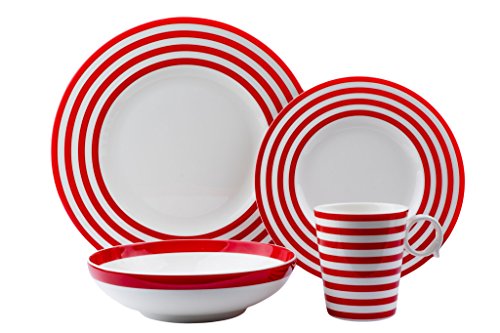 Red Vanilla FLR10-904C 4 piece Freshness Lines Place Setting with Coupe Bowl, Red
