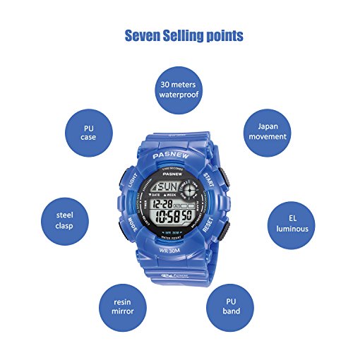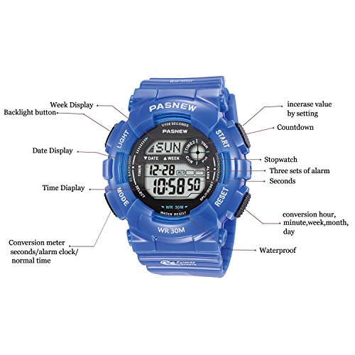 MULTI-FUNCTIONAL: Calendar Date Week Month, Alarm, time/date, EL night-light makes it easier to see time in bright light, boasts 3 ATM water-resistant for swimming, Alarm, Stopwatch, Hourly chime, 12/24 hour for mart