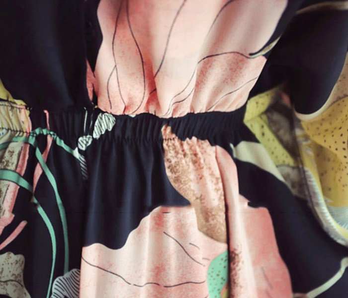 | サイズ | 総丈 | バスト | ウエスト | 肩幅 | 袖丈 | 肩幅~袖丈 | 裾幅 |